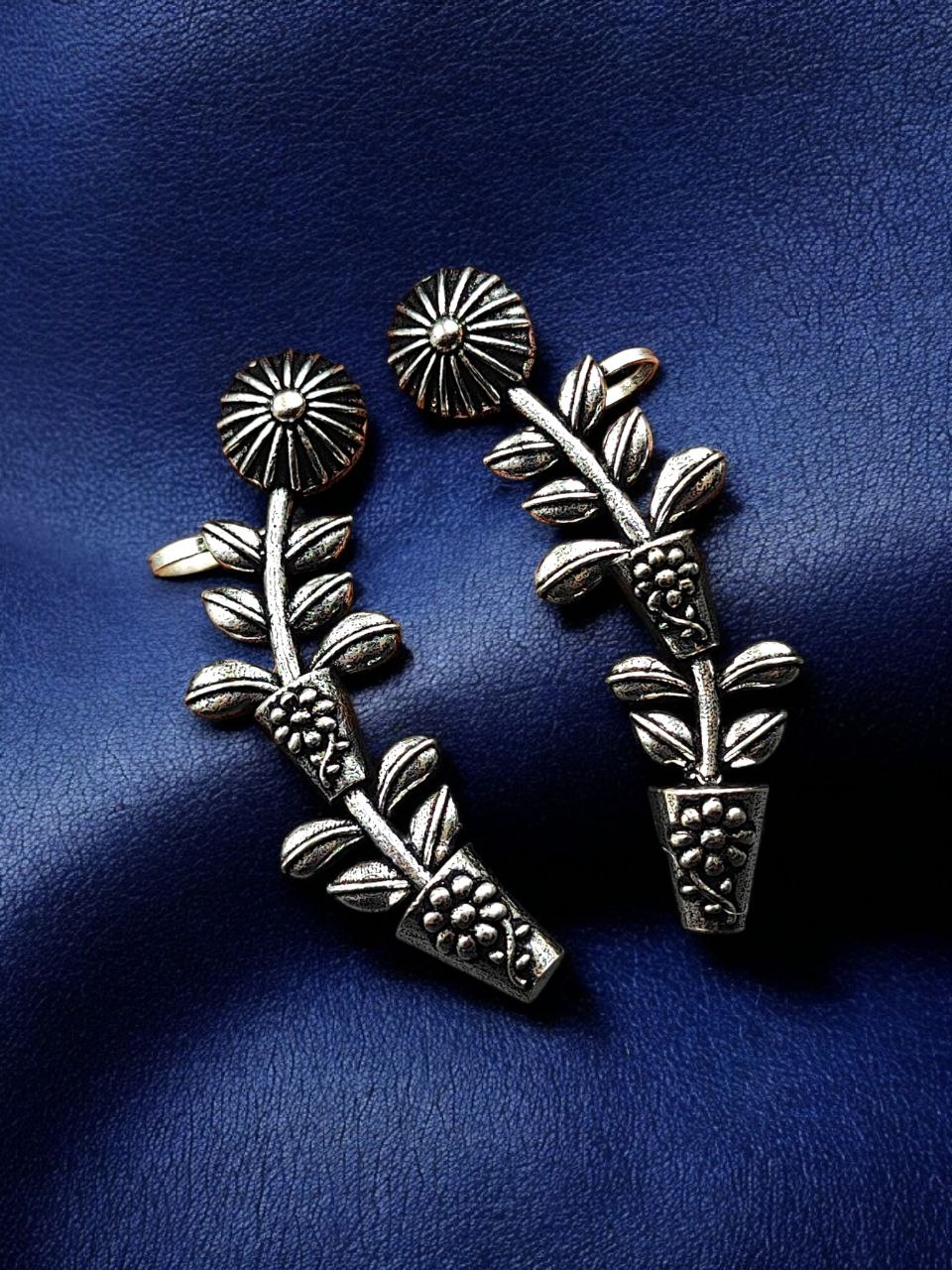 If you?re looking for jewelry that blends folk inspiration with statement fashion, this oxidized silver replica flower pot earcuff is a must-have addition to your collection.