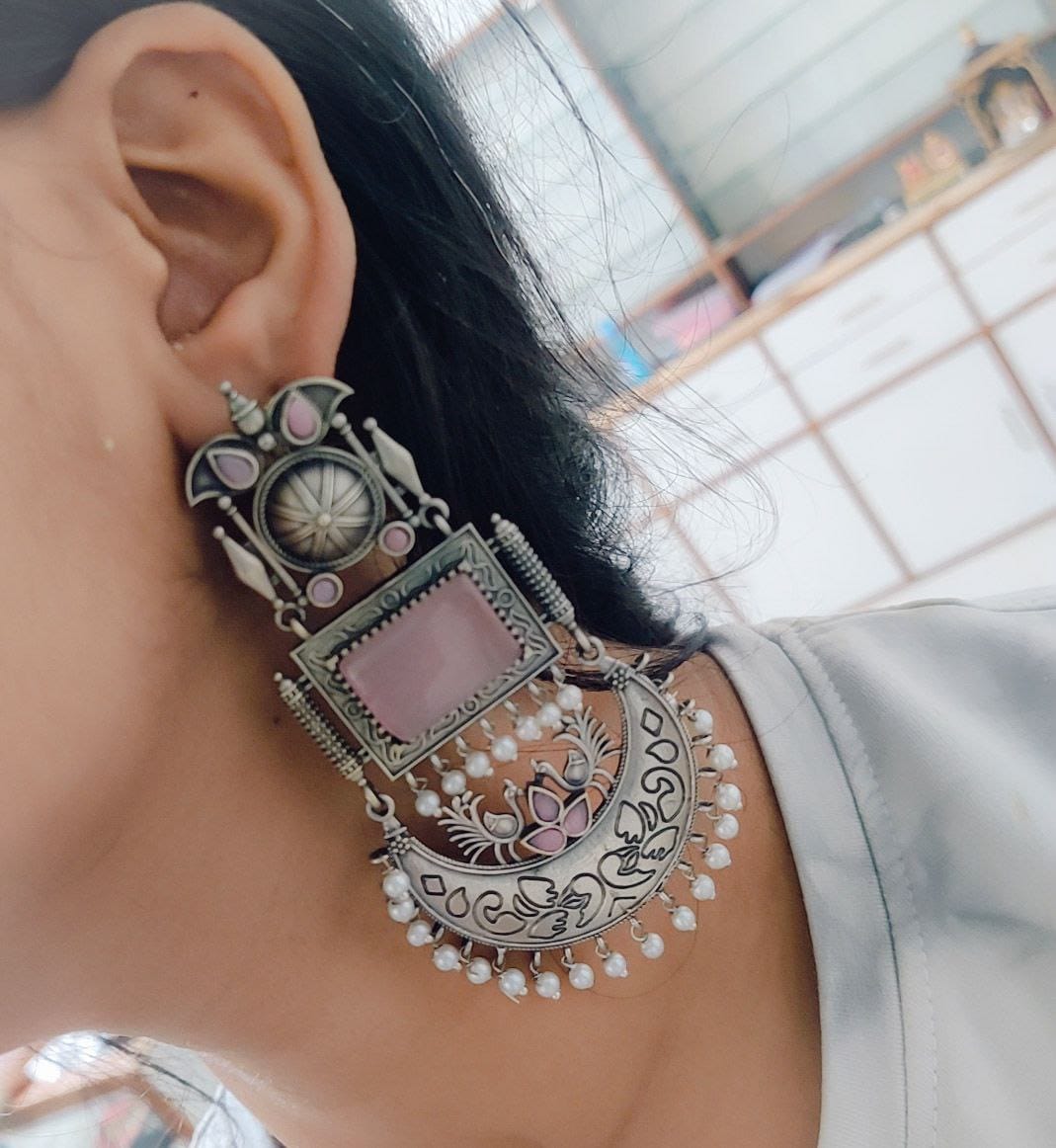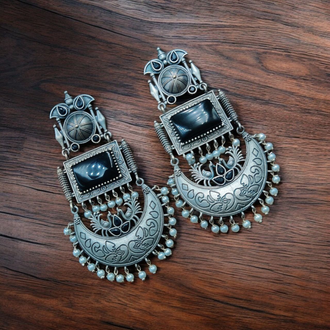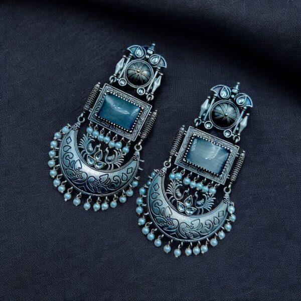 These pearl-adorned oxidized earrings are versatile enough to be styled with sarees, lehengas, kurtis, or even contemporary outfits. Their classic yet modern appeal makes them suitable for parties, traditional gatherings, office wear, and more.