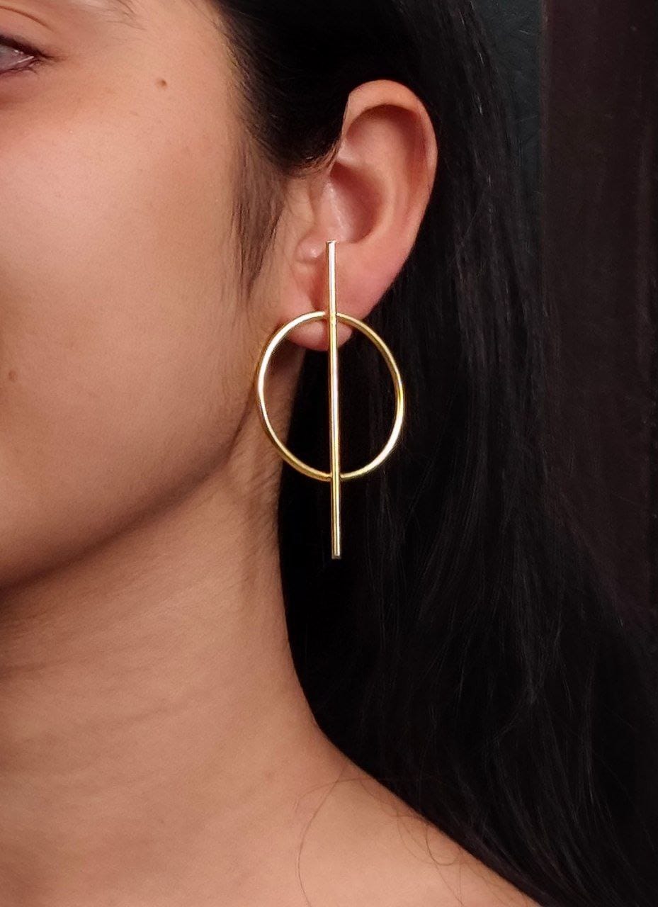 These earrings feature a minimalist yet striking circular geometric shape, making them an ideal choice for women who love bold yet elegant jewelry. The circle design symbolizes eternity and wholeness, adding a subtle yet meaningful touch to your accessory collection. Their modern aesthetic makes them suitable for Western outfits, effortlessly complementing both casual and formal ensembles.