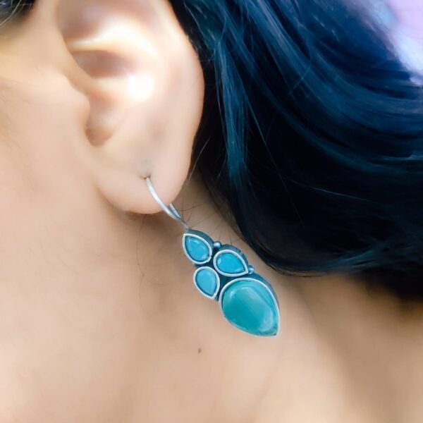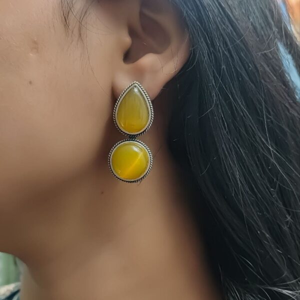Adorable Dual Monalisa Stone Silver Look Like Earrings for Girls
