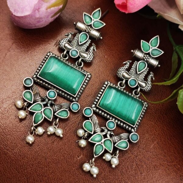 Affordable Oxidized Bird Silver Replica Stone Earrings | Premium Jewelry Gift For Her