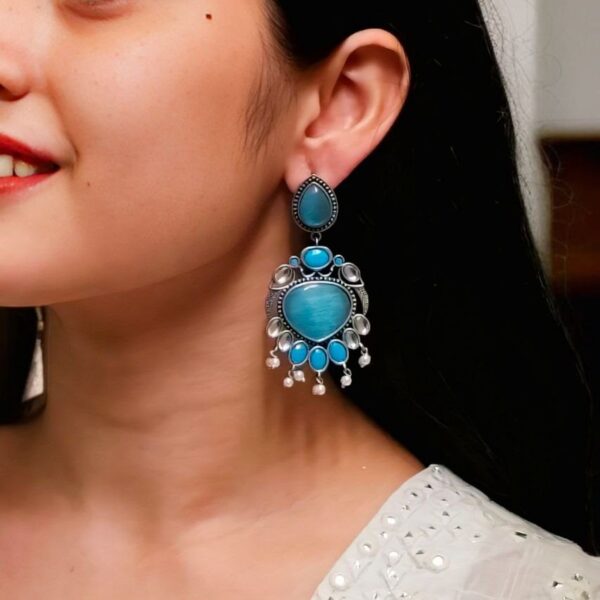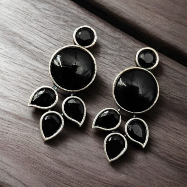 Affordable Hand-Made Silver Look Like Earrings Monalisa Stone with Pearl Work