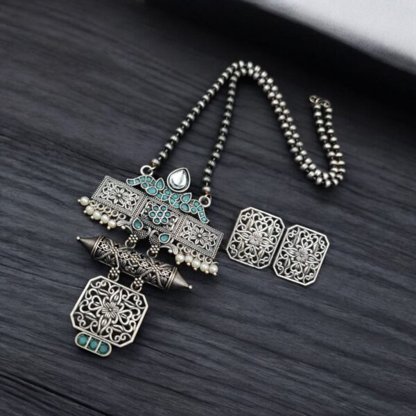 Silver Look Necklace Set | Premium Unique Oxidized Pendant With Earrings