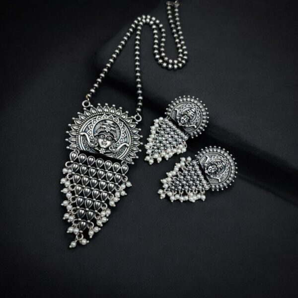 Silver Replica Lord Durga Pendant Set | Unique Navratri Special Necklace
