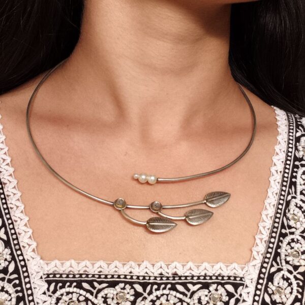 Silver Replica Leaf Design Hasli Necklace | Beautiful Traditional Oxidized Jewelry