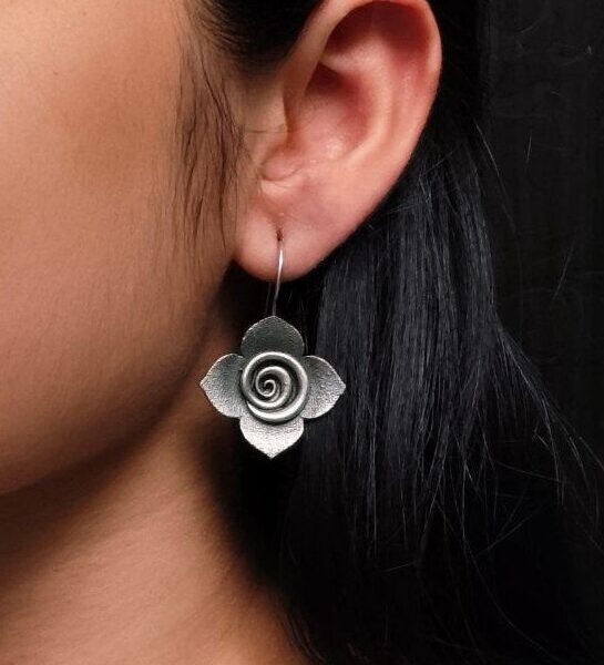 Traditional Rose Stud Earrings ? Perfect Ethnic Oxidized Silver Replica Jewelry