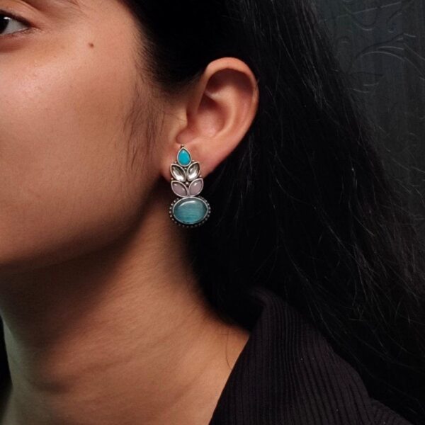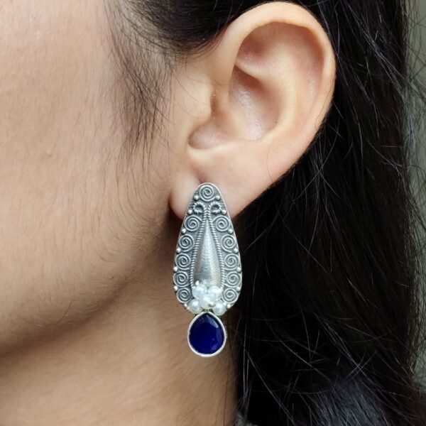 Traditional Oxidized Silver Plated Stud Earrings | Stone & Pearl Work Perfect Gift For Her