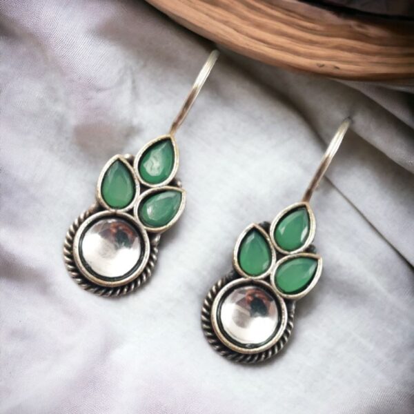Unique Design Oxidised Dangler Earrings with Stone Work ? Silver Plated Ethnic Jewelry