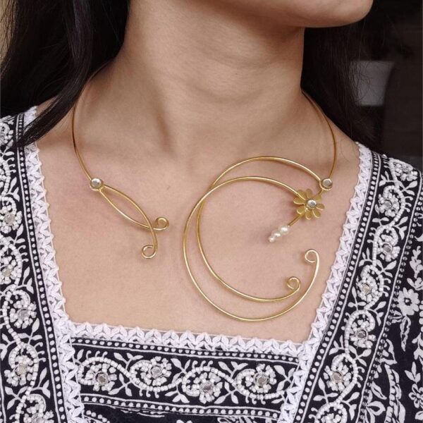 Unique Design Gold Plated Hasli Necklace | Stone Work Traditional Jewelry