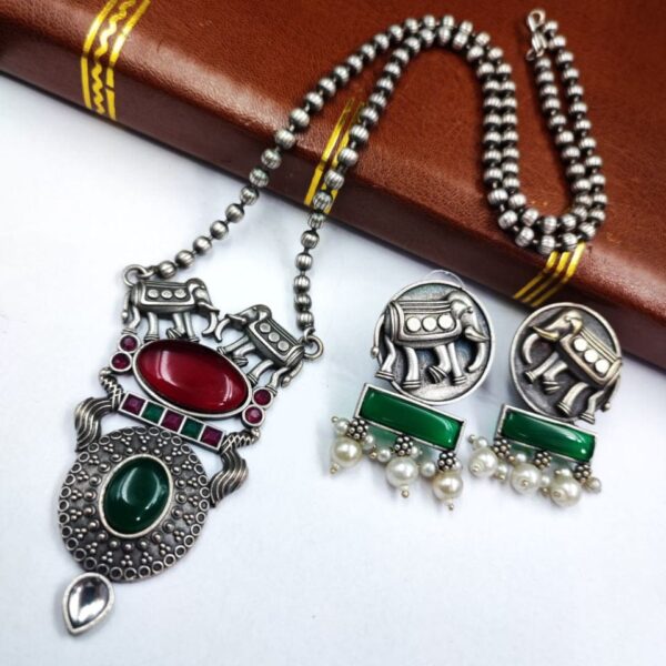 Elephant Chain Pendant Set with Monalisa Stone - Unique Handcrafted Jewelry