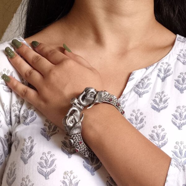 Ethnic Elephant Kada | Adjustable Silver Replica Openable Stone Work Bangle Perfect Gift For Girls