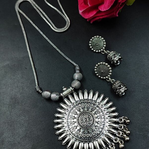 Ethnic German Silver Pendant Necklace Set | Ghungroo Detailing Jewelry